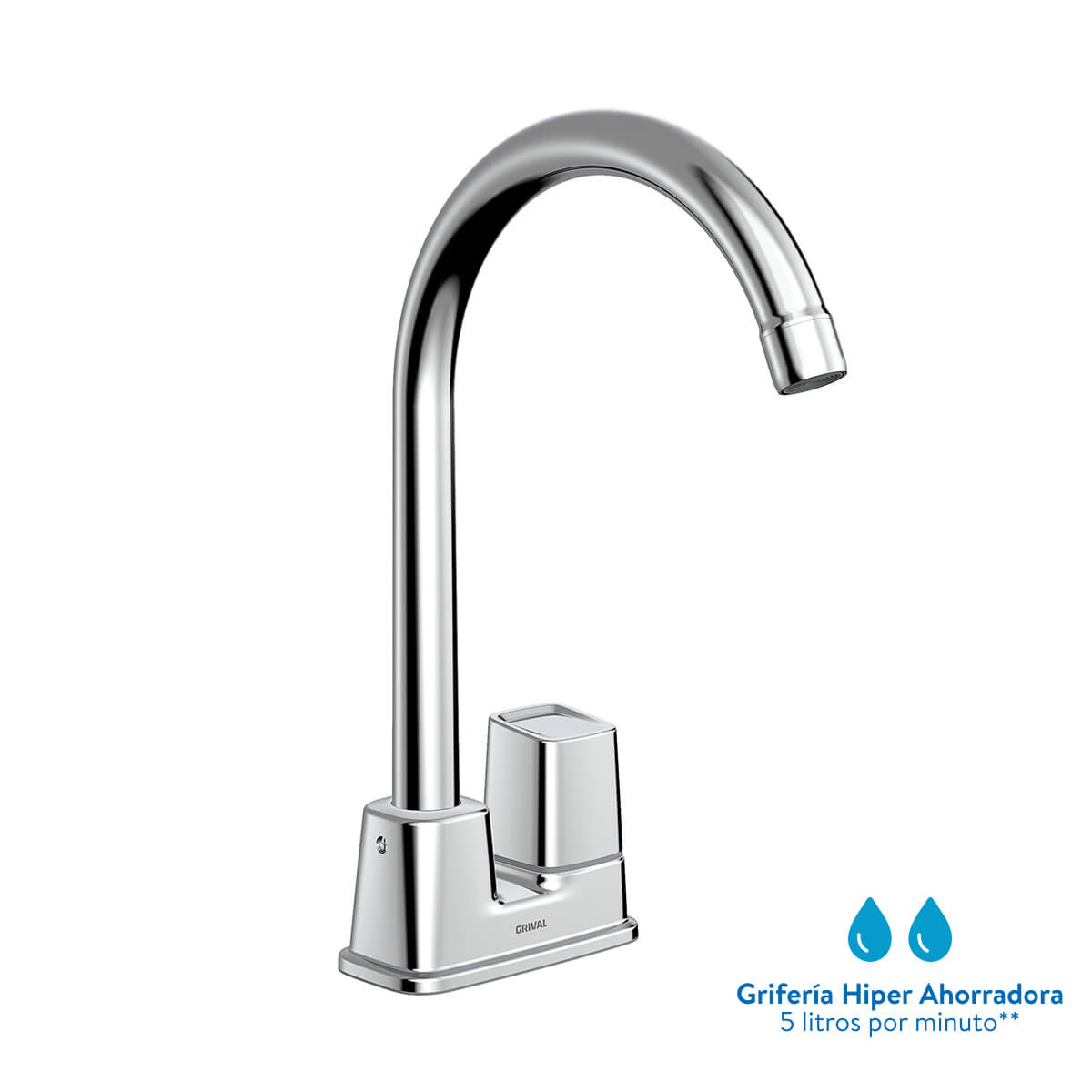 - Pico giratorio que le permite al usuario tomar ventaja del área del lavaplatos con mayor alcance y comodidad en el uso.