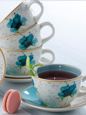 Inspirada en los trazos y en la sutileza de la acuarela en contraste con el blanco del fondo con la delicadeza de las flores. La fuerza viene dada por los colores vivos de las plantas, sin romper nunca la armonía que emana de la naturaleza.