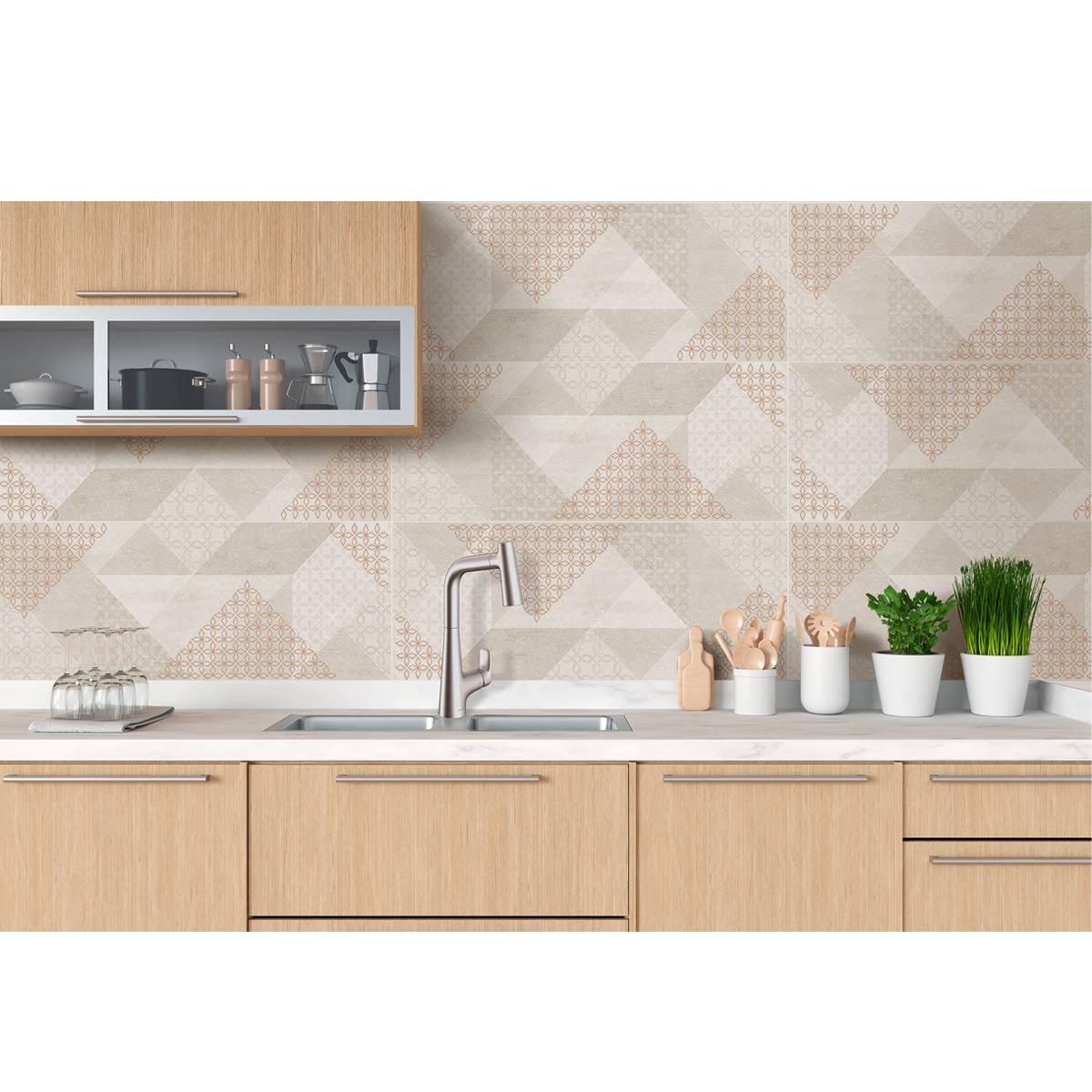 La base decorada Corona Mirage se presenta con un moderno diseño geométrico en formato 30.1×75.3 cm, intervenido con graficas de piedra natural tipo arenisca en diferentes gamas de beige. Mirage está enriquecida con una microestructura (textura) y un acabado metalizado cobrizo que le da un mayor contraste con paredes en tonos beige y marfil, logrando un toque de lujo y generando espacios modernos y sofisticados. Cuenta con Estabilidad Dimensional® y su uso es ideal para ser instalada en grandes áreas interiores. Los pegantes Pegacor® y boquillas Concolor® son ideales para instalar nuestros revestimientos Corona® (pisos, paredes y decorados). Busca la línea de pegantes y boquillas que más se ajuste a tus necesidades de instalación o combinabilidad. ¡Dale un toque único a tus espacios!