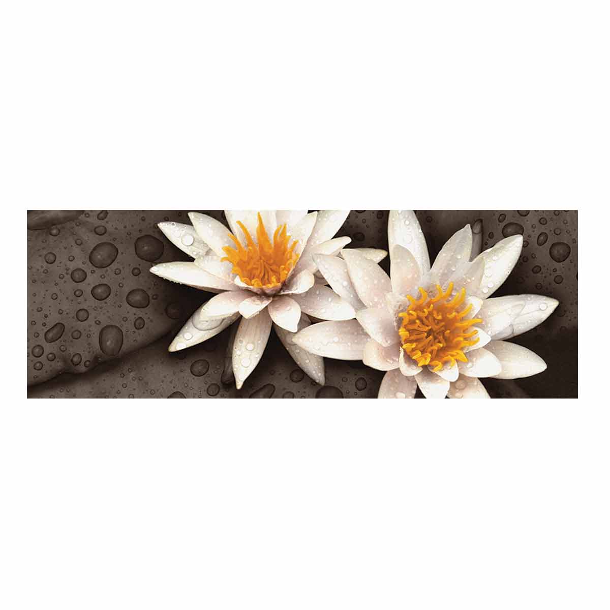 Su labor es llevar la tranquilidad de la naturaleza a los espacios del hogar por medio del realismo y acabados del diseño de la base decorada. Su acabado en granilla transparente generan una sutil sensación de relieve y un efecto de gotas.