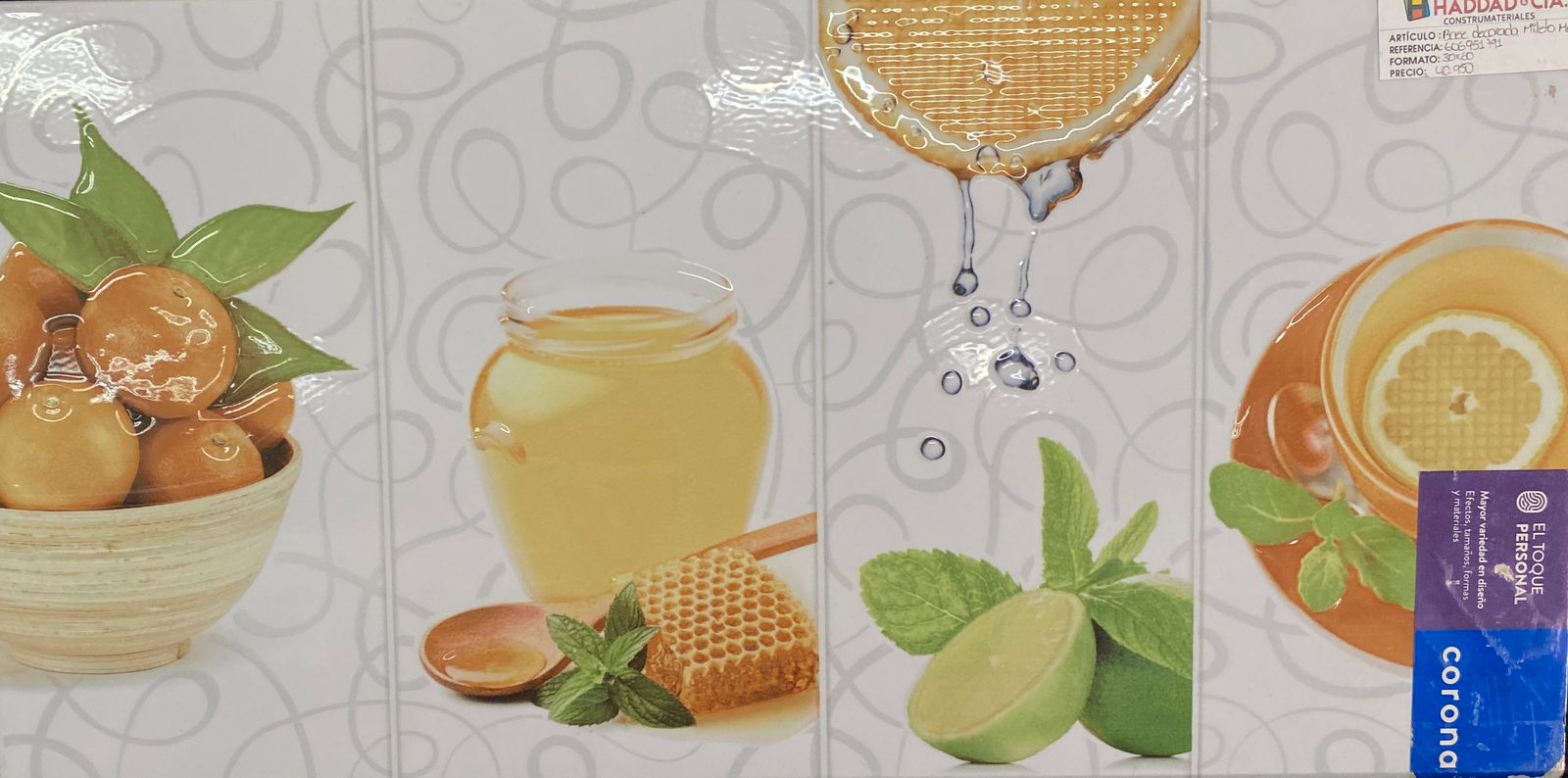 Intensos y vivos colores en sus diferentes gamas se resaltan en este diseño de imágenes reales logrado a la tecnología HD, diseño alusivo a refrescantes bebidas cítricas, y genera un conjunto de sensaciones en donde se resalta el efecto visual tipo espejo logrado por su acabado de lustre y los diferentes toques en granilla que dan un sensación en relieve, alcanzando una vinculación con el sentido del tacto, gracias a su cerámica esmaltada, sus colores perduran en el tiempo y brindando mayor resistencia.