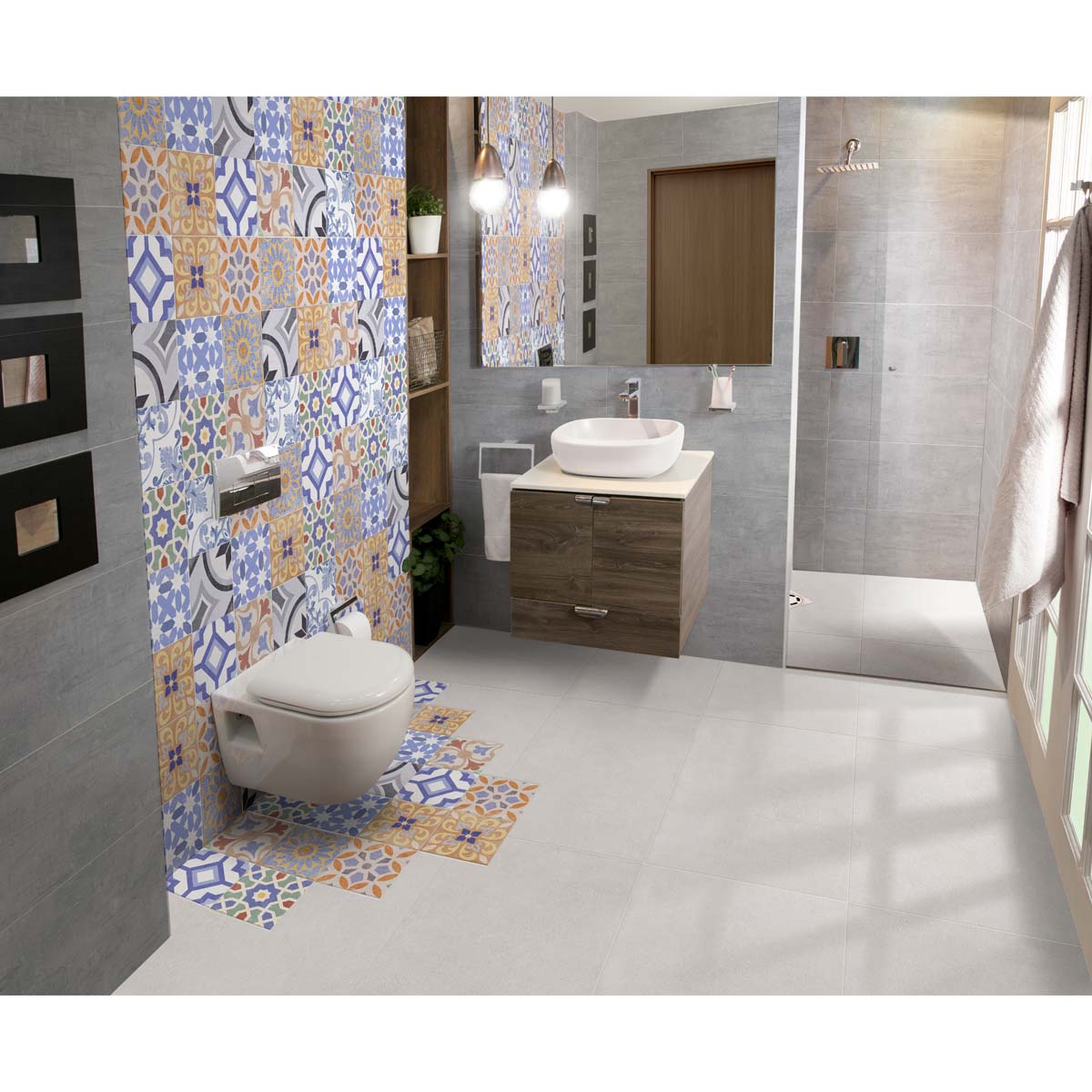 Representa la belleza por los diseños simples, inspiradores y únicos sus formas y colores se combinan libre pero intencionadamente logrando piezas provocativas y lúdicas que incorporan el concepto de “diseño feliz” en elementos cotidianos. Su toque retro con un sutil aire modernizado expresado en las gráficas, el color, el uso de contrastes y patrones invertidos provocará espacios singulares. Base Decorada de forma Cuadrada Mate y formato 19.8X19.8, ideal para uso en Piso y Pared.